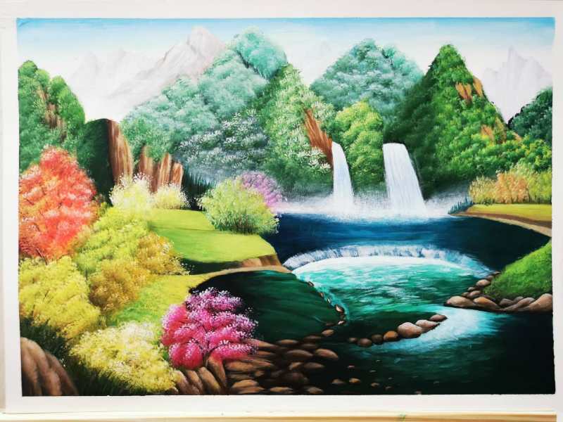 煤電實(shí)業(yè)公司王曉利手工丙烯彩繪——山青水綠