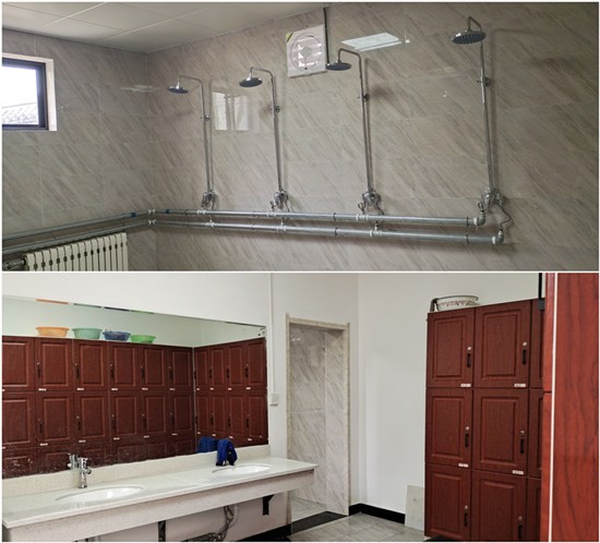 為充分考慮一線職工需求,鑫橋公司6月初啟動(dòng)浴室修葺升級(jí)工程,改造后的浴室雖然面積不大,但功能齊全,設(shè)有沐浴、更衣、洗衣、晾衣和休息五個(gè)區(qū)域,增添了熱水器,節(jié)能環(huán)保用水充足,可供全廠職工人洗澡,更衣室裝有取暖和排風(fēng)系統(tǒng),洗衣房有熱水供應(yīng)、洗衣機(jī)等設(shè)備,一應(yīng)俱全,滿足職工洗衣晾曬需求。