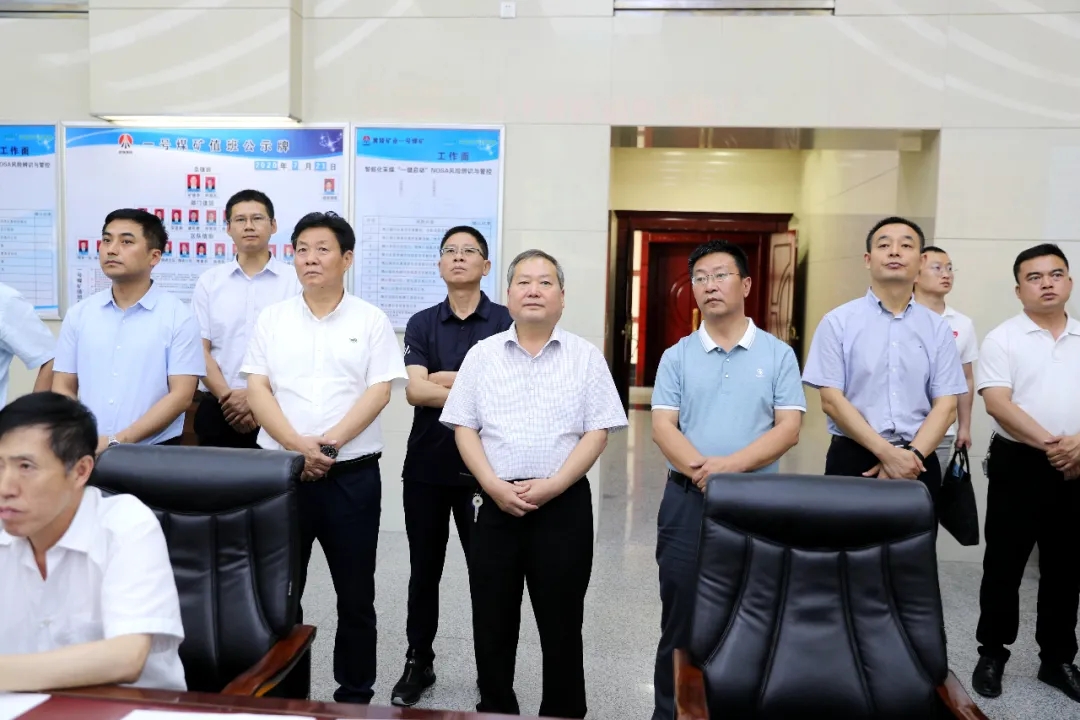 隨后,贠紅衛(wèi)、謝康民來(lái)到一號(hào)煤礦,先后觀看了NOSA風(fēng)險(xiǎn)管理和全員創(chuàng)新成果展示,詳細(xì)了解了公司崗位價(jià)值精細(xì)化管理模式,觀摩了智能化無(wú)人綜采工作面地面監(jiān)控中心情況,聽(tīng)取了智能化無(wú)人開(kāi)采技術(shù)、“三網(wǎng)一張圖”協(xié)同管理、基于透明地質(zhì)的大數(shù)據(jù)精準(zhǔn)開(kāi)采技術(shù)研究、4G系統(tǒng)建設(shè)、礦井生產(chǎn)輔助系統(tǒng)巡檢機(jī)器人應(yīng)用等“智慧礦山”建設(shè)情況。