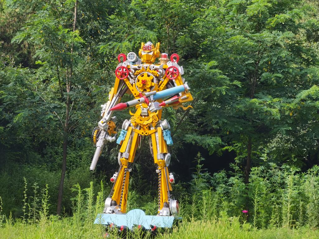 矸石山對面綠茸茸的草坪上,機(jī)電隊(duì)創(chuàng)新“達(dá)人”陳朋軍用廢舊彈簧、水泵葉輪、機(jī)車舊部件、鋼梁邊角料、單體液壓支柱閥門、鋼板、鋁鋅管邊角料設(shè)計加工的“明瑞機(jī)器人”精神抖擻,格外的精神,成為了槐香路上一道靚麗的風(fēng)景。