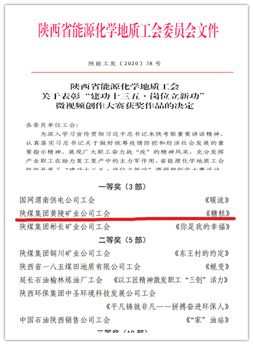 近日,在陜西省能源化學地質工會組織開展的“建功十三五·崗位立新功”微視頻創(chuàng)作大賽活動中,公司報送的微視頻《糖糕》榮獲一等獎。