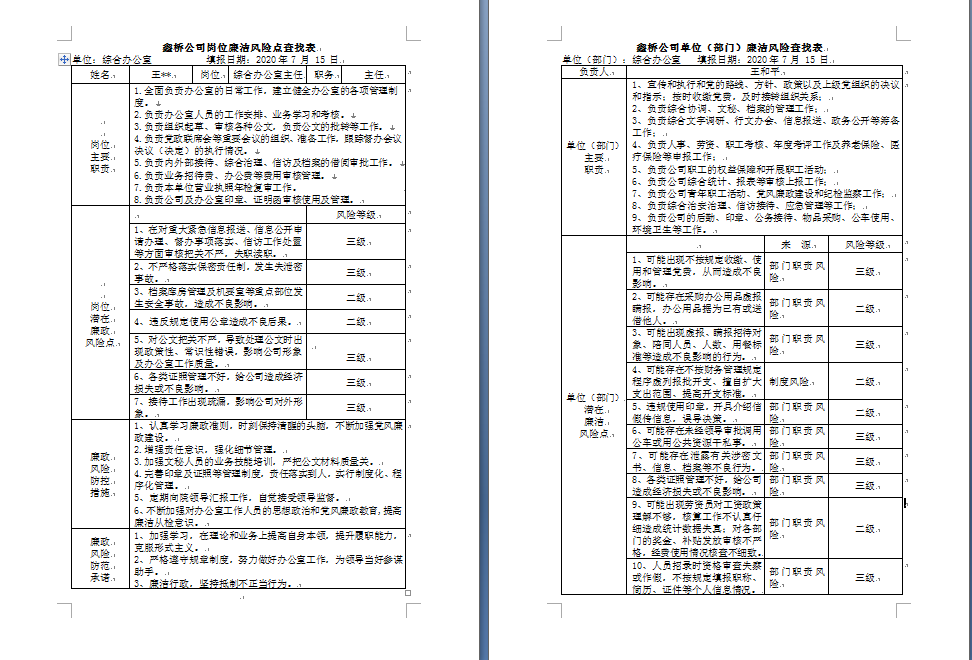廉潔風險重防控。深入開展崗位廉潔風險排查工作,共對機關科室和基層單位11家單位,29個崗位進行了廉潔風險點排查,對29個風險點分成三個風險等級,建立了廉潔風險防控管理資料,并有針對性的提出具體防范措施和辦法,筑牢了防控風險屏障。