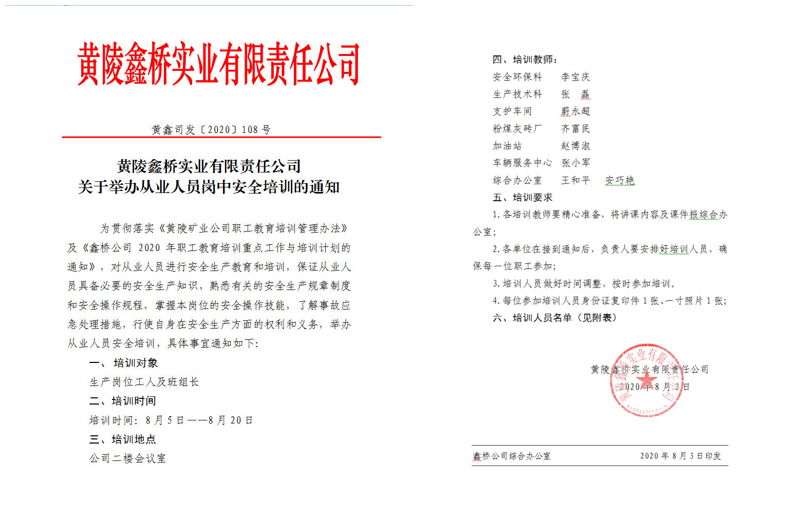 為進一步加強人的安全行為治理工作,提高從業(yè)人員安全素質(zhì),掌握必要的安全生產(chǎn)知識以及本崗位的安全操作技能,增強預(yù)防事故、控制職業(yè)危害和應(yīng)急處理的能力,確保安全生產(chǎn),提高工作效率。8月份,鑫橋公司組織開展從業(yè)人員崗中安全培訓班,通過“三個到位”舉措,為150名職工“蓄能充電”。