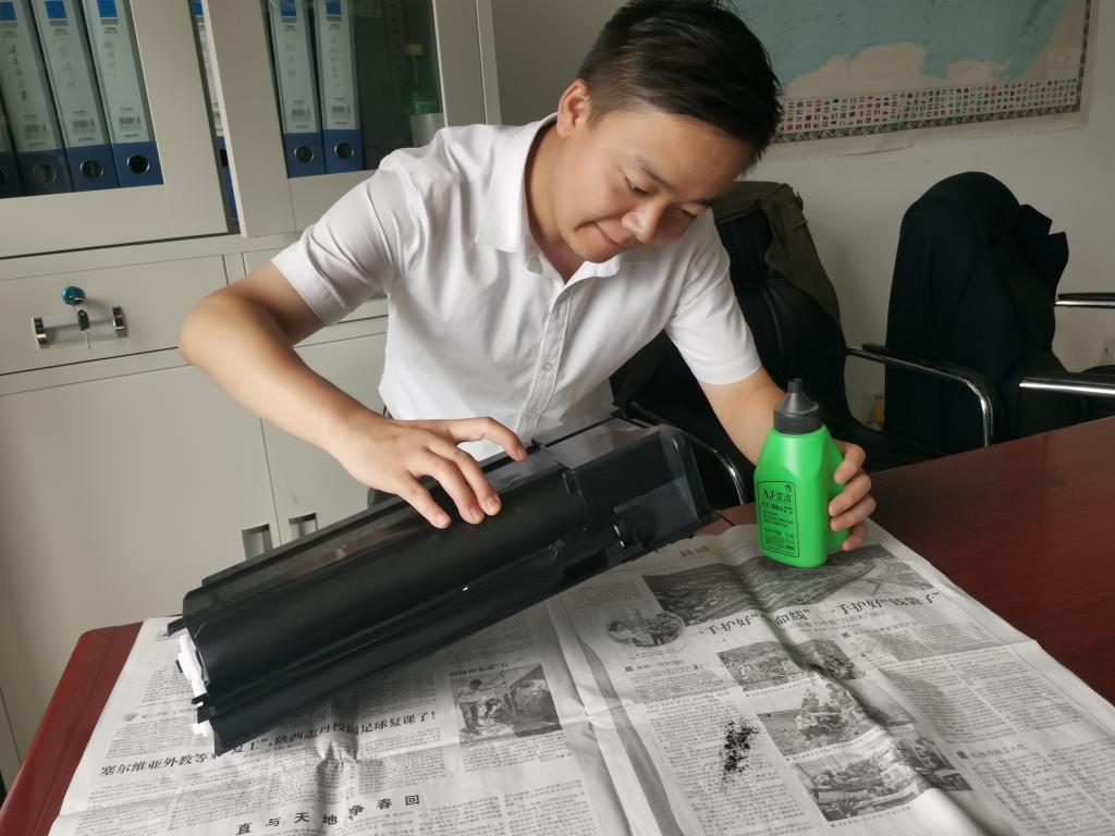 “呀!小張,你現(xiàn)在給墨盒加墨的手藝是越來越好了?!薄澳鞘牵也坏拥目欤蛴⌒Ч彩歉芨艿?。”小張自信的說。