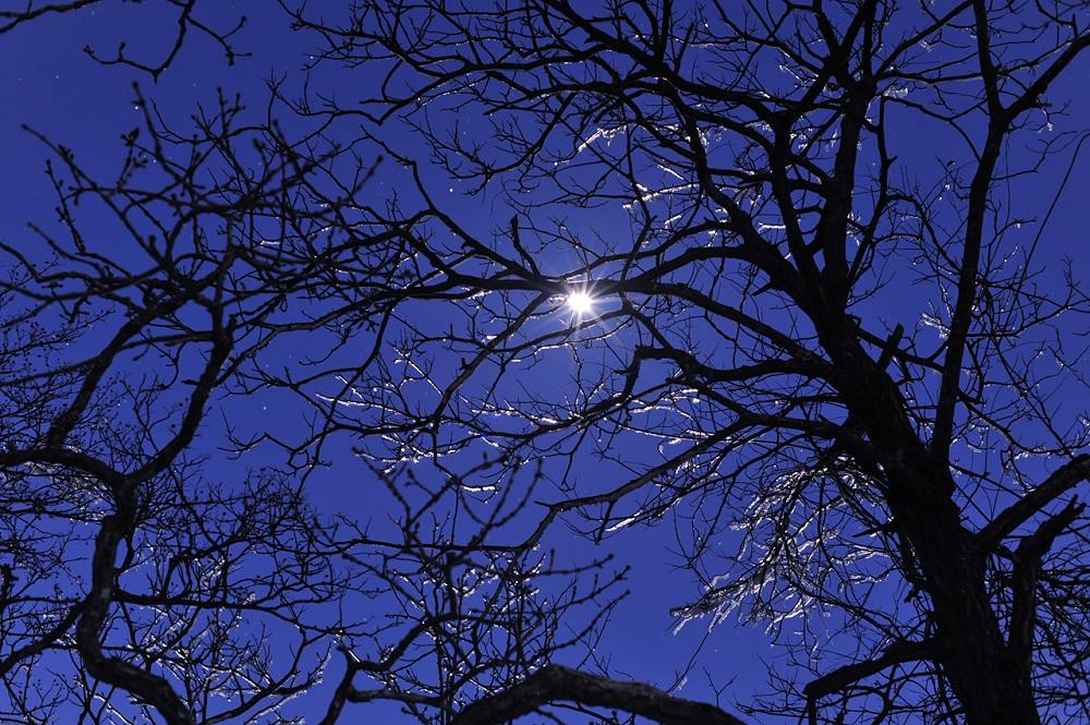 他從遠(yuǎn)方走來,看見月光掛在樹梢,安靜而又明亮。
