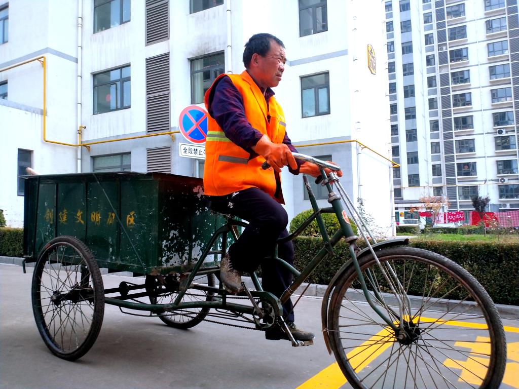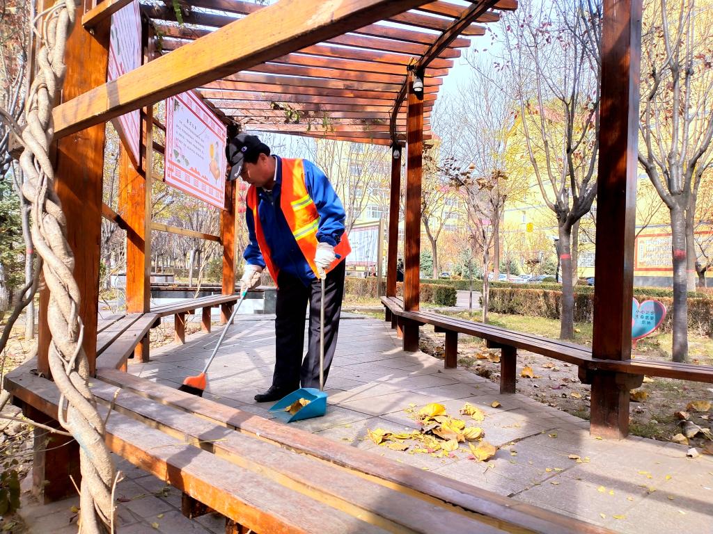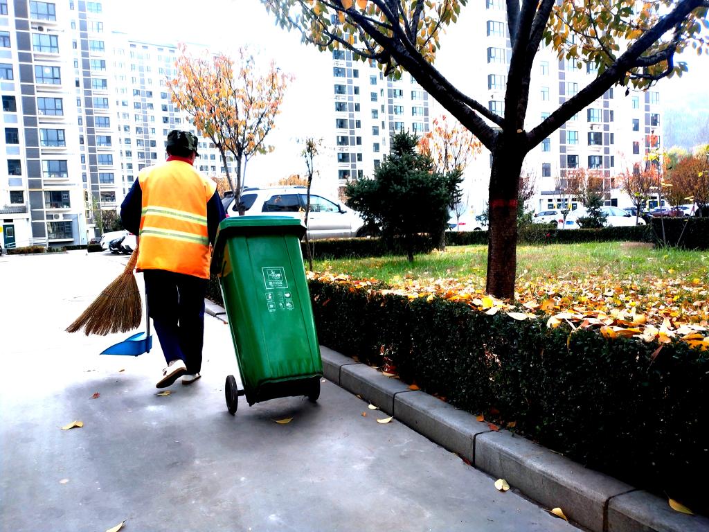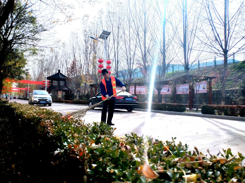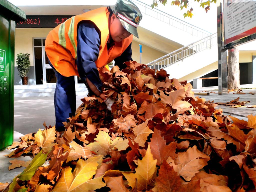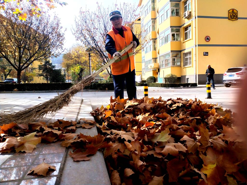 秋風(fēng)瑟瑟,滿眼金黃,獨自走在礦區(qū)的路上,吸吮著秋天的味道,南去的雁群不時從頭頂飛過,仿佛將我?guī)胪挼耐鯂魂嚰贝俚膾甙崖?,將我從夢境帶回了現(xiàn)實,橘色的馬甲與秋色重疊,手中的掃把將落葉掃下,路面又回了原有的模樣,他們像舞動的秋葉,懷抱著手中的舞伴,跟隨著“嗖嗖”的伴奏聲,上演著秋天的華爾茲。無論地凍嚴(yán)寒、風(fēng)刀霜劍,還是風(fēng)雨凄凄、焦金流石之時,都擋不住這群最可愛的人愛企愛崗的心。(何明偉 楊博)