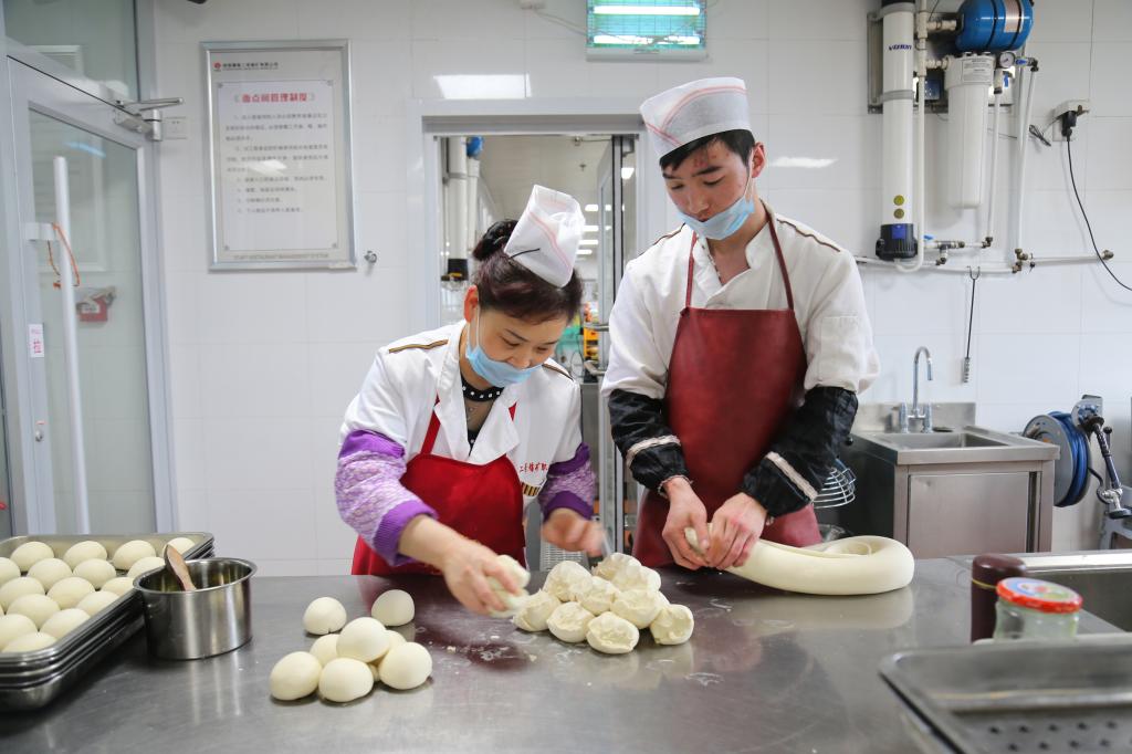 “素菜1—2元不等,肉菜最貴的也就4元,雞蛋8毛一個,稀飯免費,一頓早飯3、5元就能吃的很飽?!倍柮旱V掘進準備隊的新工董梓涵邊吃早餐邊稱贊食堂的伙食好,董梓涵在來到二號煤礦前,曾在西安高新區(qū)咖啡街區(qū)工作,那時他一天光伙食費就要花掉小半百,“現(xiàn)在一日三餐最多花20塊錢,物美價廉還干凈衛(wèi)生。”像董梓涵一樣,每天在食堂吃飯已成為許多職工的第一選擇。