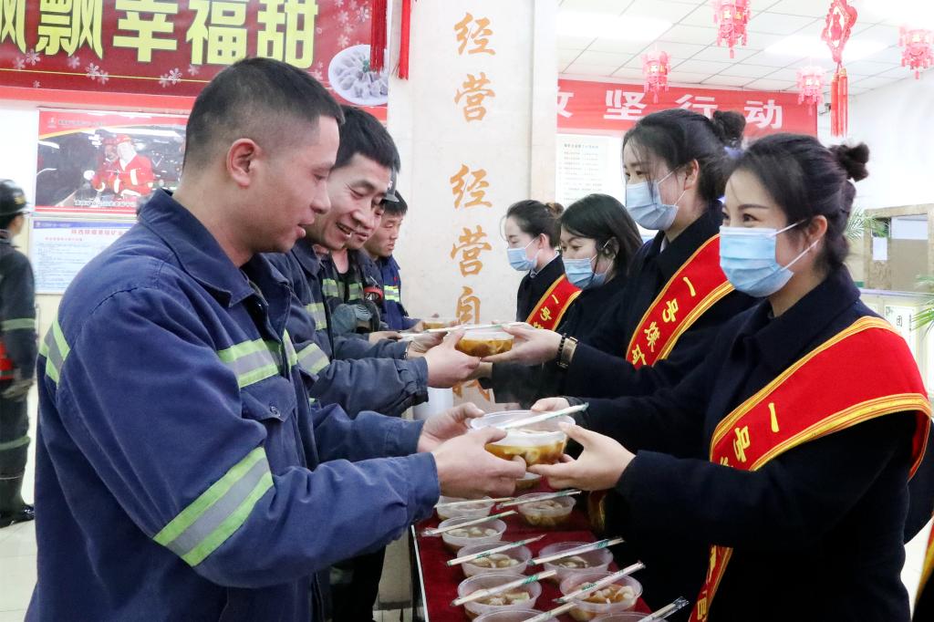 早上六點(diǎn),天雖還未亮,寒風(fēng)刺骨,在一號(hào)煤礦候車室里卻暖意融融,熱鬧非凡。該礦工會(huì)一大早便組織家屬協(xié)管員們?yōu)榈V工兄弟們準(zhǔn)備上了熱騰騰的餃子,讓升、入井的職工再一次在冬日的“暖陽(yáng)”里感受“家的溫暖”。
