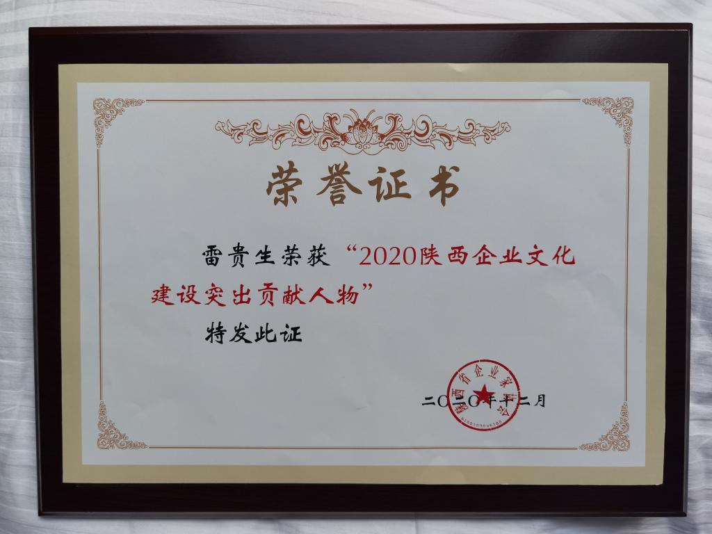 公司黨委書記、董事長雷貴生同志榮獲“2020陜西企業(yè)文化建設突出貢獻人物”。