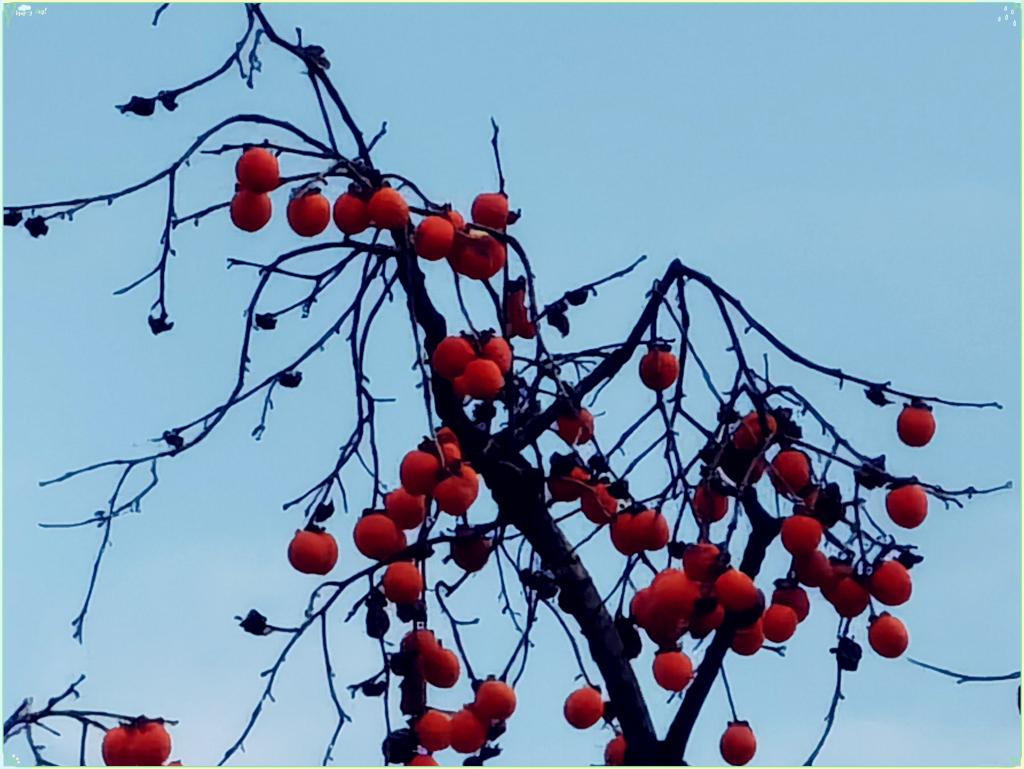 也不知道是什么原因,小時(shí)候雖然喜歡吃柿子,但是天生不天會(huì)爬樹(shù)是我的短板,所以只能就近從院墻上或者屋頂上摘一些能夠得著的柿子,剛摘的柿子是不能吃的,拿回家以后,祖父就會(huì)把它埋進(jìn)裝有糜子的木箱子里面,大概一個(gè)星期以后,柿子差不多就熟透了,當(dāng)打開(kāi)箱蓋的一瞬間,一股香甜味撲鼻而來(lái)。后來(lái)生活漸漸好了,有了和蘋(píng)果和梨,把這些水果和柿子放在一起,味道更是清香撲鼻,現(xiàn)在回想起那種味道,依然覺(jué)得回味無(wú)窮。