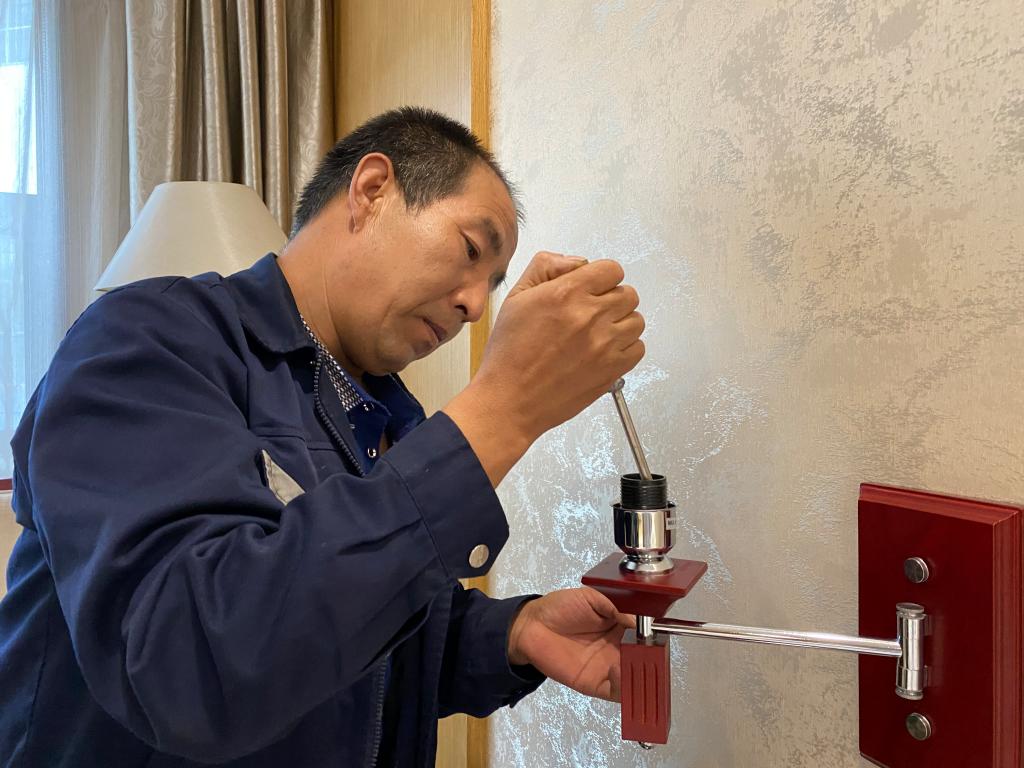 同事們總是取笑他喜歡“吃虧”?!笆瘞?,你加班又沒有加班費,趕緊下班。”“今日事今日畢,況且不及時把有故障的空調(diào)線路修好,就會降低客人的入住體驗感,那不是給咱賓館砸了門面?!笔瘞熞贿叴骱媒^緣手套一邊說道。