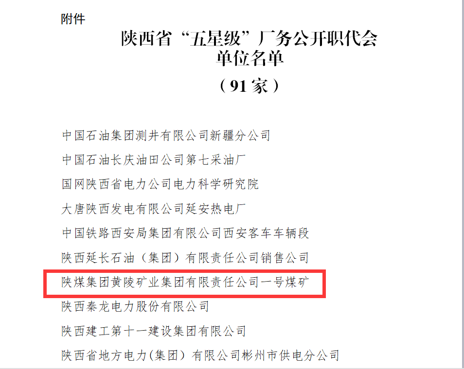 近日,陜西省廠務公開民主管理協(xié)調組發(fā)布了全省星級職代會優(yōu)秀企事業(yè)單位的名單,一號煤礦榮獲“陜西省五星級廠務公開職代會單位”稱號,標志著該礦躋身陜西省總工會創(chuàng)建五星級職代會的最高等級行列。