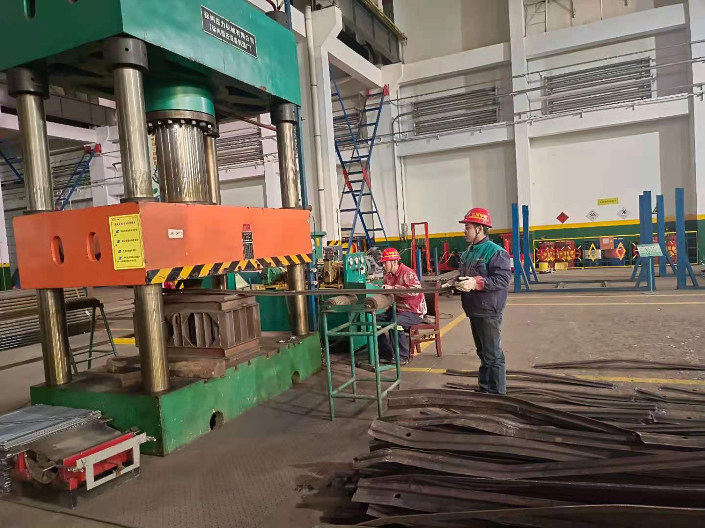 第一根鋼帶受損不是很要重,隨著壓力機(jī)的緩緩下落,坑洼地帶平平整整恢復(fù)如初,稍作旋轉(zhuǎn)幾處變形的地方也恢復(fù)了原有的模樣,關(guān)掉開關(guān),抬下鋼帶,望著修復(fù)的效果,職工們喜上眉梢。一根又一根、一遍又一遍,周而復(fù)始400余根鋼帶,短短半個(gè)小時(shí)全部整形完成。