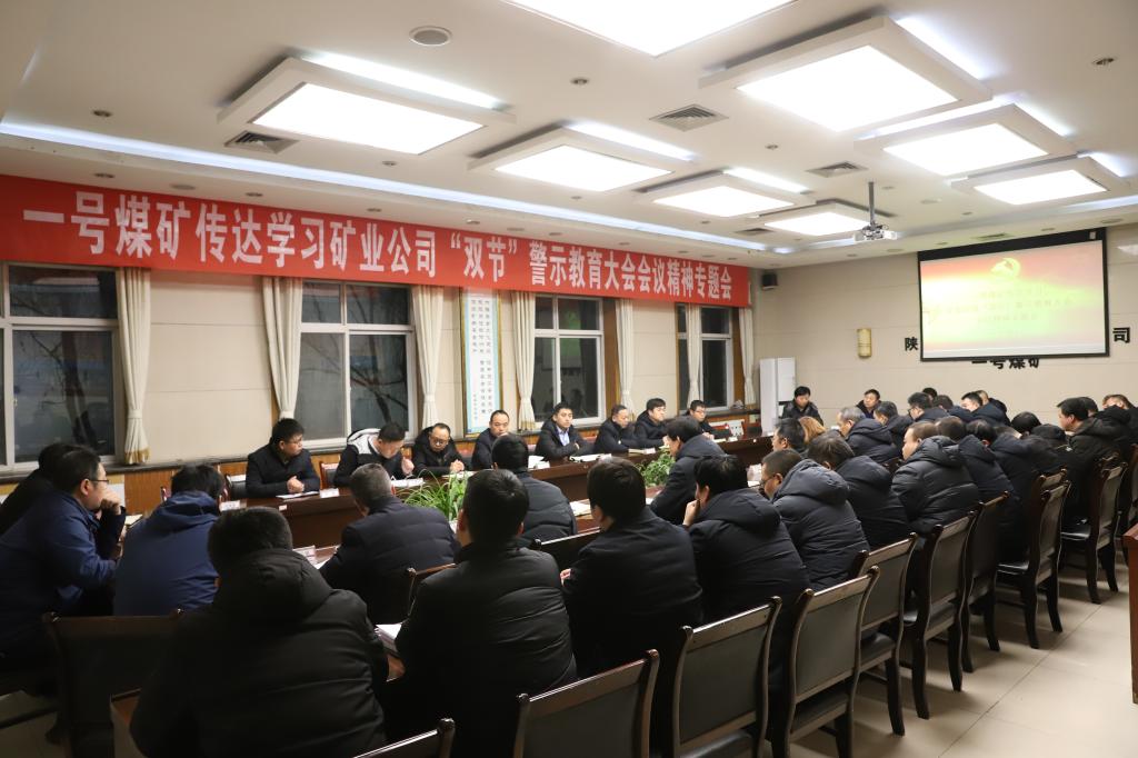1月8日,一號煤礦召開傳達學習黃陵礦業(yè)公司“雙節(jié)”警示教育大會專題會,該礦領(lǐng)導(dǎo)班子成員、各部室、區(qū)隊負責人和各支部書記共計50余人參加會議。