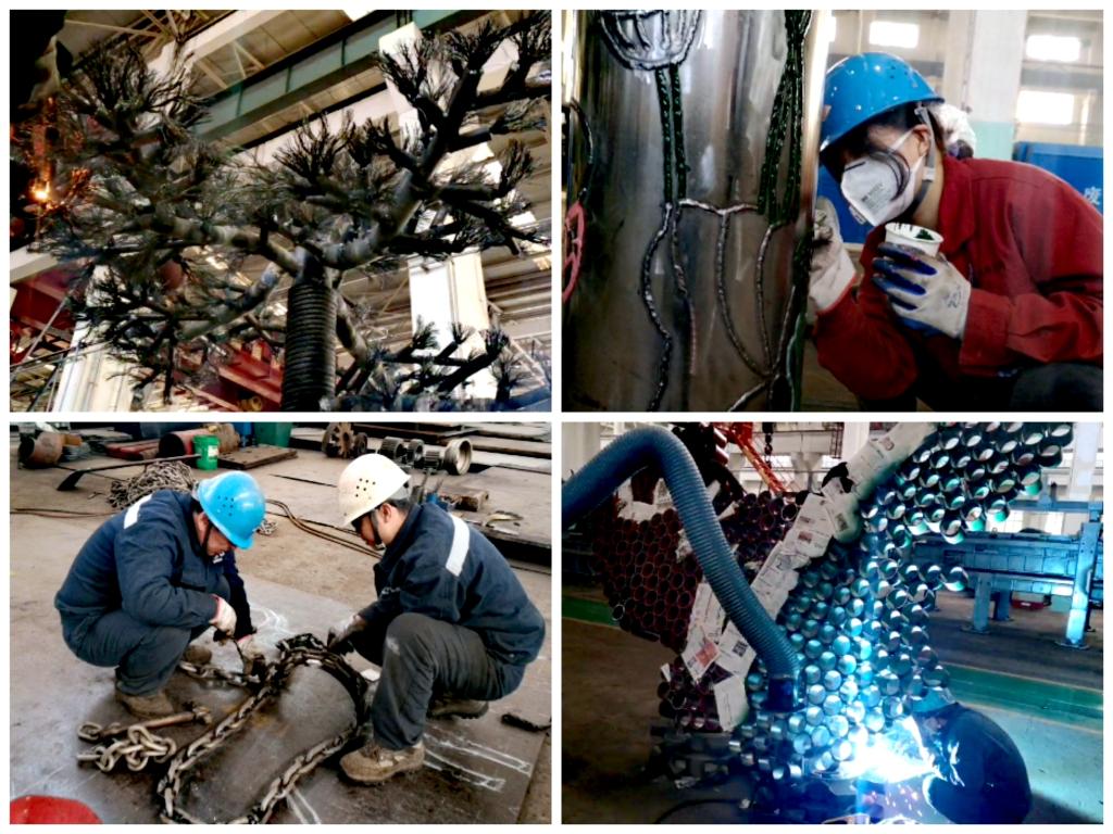 想要?jiǎng)?chuàng)作出一件合格的藝術(shù)品,需要掌握許多技術(shù),焊接就是其中之一,雖然他們只是機(jī)電公司的兩名普通職工,但憑借嫻熟的工作技能和對(duì)生活的熱愛,將一堆廢金屬鏈糅合制成了非常具有藝術(shù)性作品。