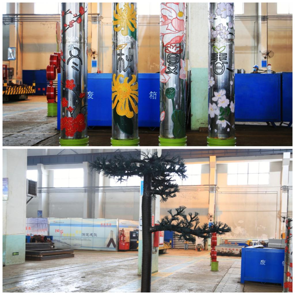 創(chuàng)作者季國凱、楊勇向筆者介紹說:“為了參加此次創(chuàng)意比賽,我們閑暇時(shí)間查閱了很多資料,也設(shè)計(jì)過很多方案,但最終決定創(chuàng)作四季景觀與植物雕塑,是因?yàn)橹谱魉璧牟牧隙际菑U舊品,本身很符合修舊利廢的理念,而且這些雕塑將來安置到二分廠,不僅能夠裝點(diǎn)廠區(qū)環(huán)境,更是對(duì)環(huán)保理念的宣傳”。