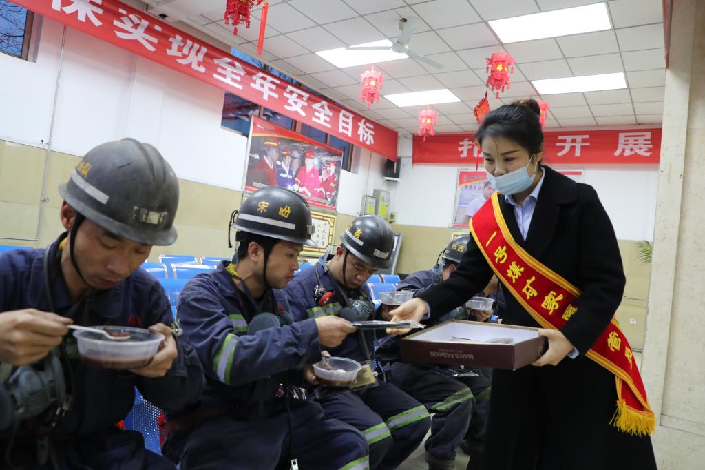 “礦工師傅們,請(qǐng)您喝碗暖心幸福粥,平安又幸福。”