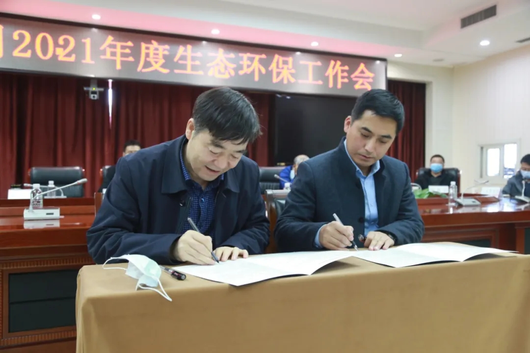 王鵬飛與14家基層單位簽訂了2021年度生態(tài)環(huán)保目標(biāo)責(zé)任書。