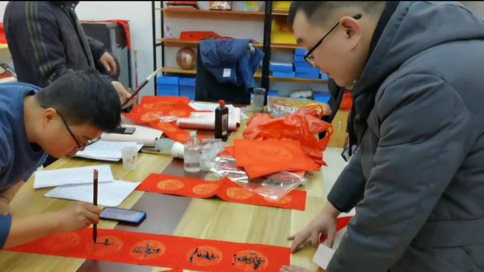 捧著對聯(lián)的庫管栗師傅笑得合不攏嘴,高興地說到:“牛年春節(jié)馬上就要到了,貼上福字、掛上春聯(lián),把家里收拾得喜慶一點,感覺過年的氛圍更加濃厚了,這是‘娘家人’為我們量身定做的新春祝福!”