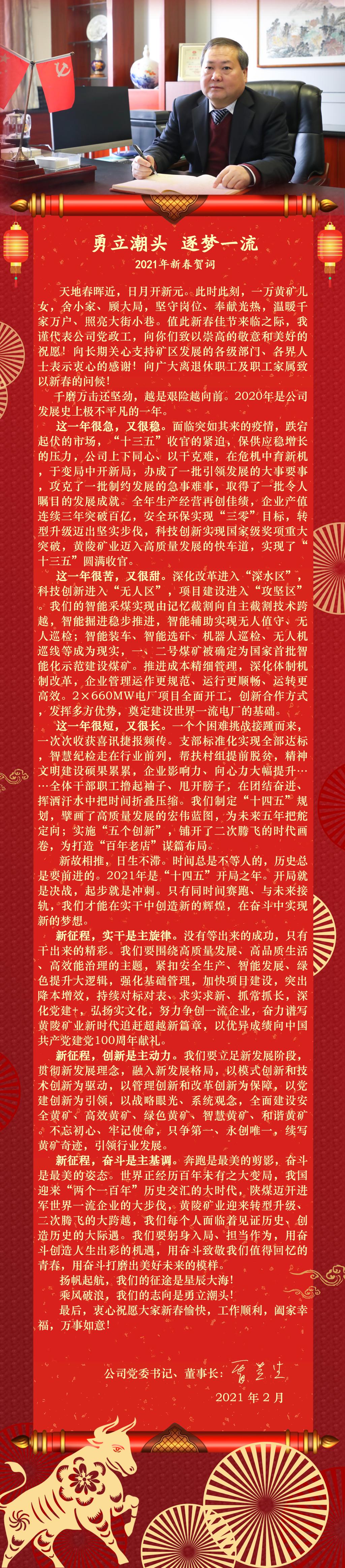 公司黨委書記、董事長雷貴生發(fā)表二零二一年新春賀詞