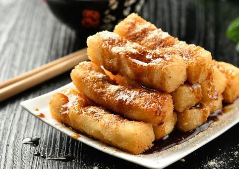 年前的日子總是很忙,不是做豆腐就是蒸饅頭,但做年糕同樣很重要,是過年不可或缺的重要內(nèi)容,母親將小鐵鍋移到戶外,用幾塊大土塊架起簡(jiǎn)單的鍋臺(tái),小鐵鍋里盛了油,父親點(diǎn)著火,隨著油溫的升高,香味就滿院子散了開來,這時(shí),母親已經(jīng)將年糕切成片狀,不斷用手在油鍋上方試溫度,等差不多了,就吩咐父親讓火小點(diǎn),然后將年糕下鍋,不一會(huì),滿院子的香味里面裹著年糕獨(dú)有的甜味,孩子們?cè)缇偷炔患傲耍黄饑阱佭?,看著年糕在油鍋里翻滾,父親不停地用筷子攪動(dòng),最后夾出來放在笊籬上控油。