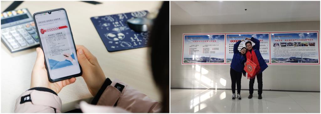 “親愛的老公,由于疫情防控和生產(chǎn)的需要,今年春節(jié)咱倆都必須堅(jiān)守崗位,好在有來自家人的理解和公司的溫暖,謝謝你一路陪伴我,2021年,我要用幸福和愛‘包圍’住你。”