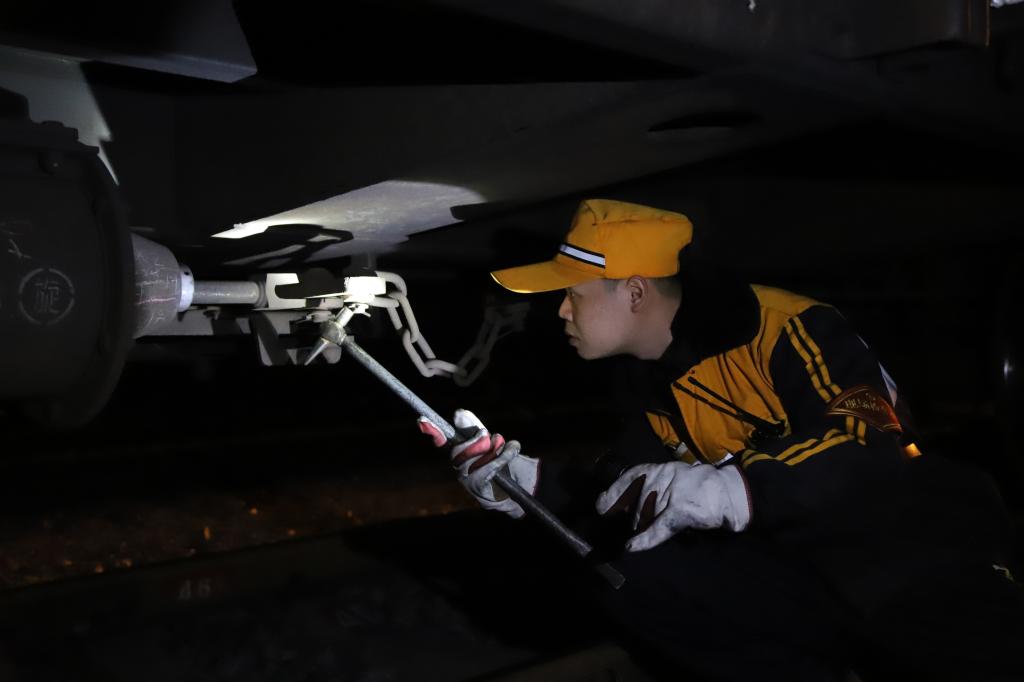 “今天的車輛很多,這已經(jīng)是今晚夜班的第四趟會(huì)車,我們從接班以來到現(xiàn)在已經(jīng)連續(xù)工作近四個(gè)小時(shí)?!睓z車二班班組長翟沛力說, “累是肯定累,但為了新年‘開門紅’,保障煤炭運(yùn)輸生產(chǎn)正常進(jìn)行,為了大家都能過個(gè)好年,我們就算苦點(diǎn)累點(diǎn)也是高興的。”10名檢車員,一位紅外線聯(lián)絡(luò)員。在這個(gè)除夕夜,在這個(gè)繁忙的車站,用他們的兢兢業(yè)業(yè)敲起“叮當(dāng)”的交響樂,伴隨著喜慶的鞭炮聲,完成著春節(jié)里的堅(jiān)守。