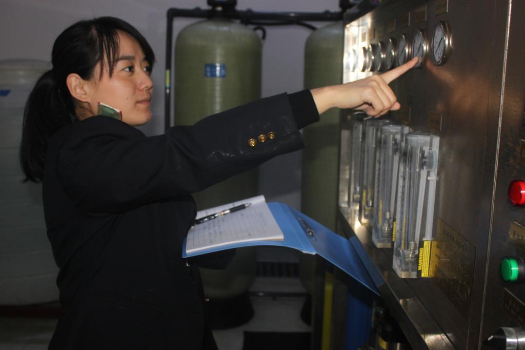 為了保證設(shè)備的安全運(yùn)行,水質(zhì)符合相關(guān)標(biāo)準(zhǔn)。只要設(shè)備運(yùn)行過(guò)程中,她總是在超過(guò)50分唄噪音的機(jī)房中不斷巡視,對(duì)設(shè)備的安全運(yùn)行進(jìn)行實(shí)時(shí)監(jiān)測(cè),將測(cè)試出的“安全密碼”記錄在運(yùn)行日志本中,查看近期波動(dòng)情況,只要稍有偏差就立即檢修。面對(duì)龐大而吵雜的設(shè)備她從未厭倦過(guò);并嚴(yán)格執(zhí)行水質(zhì)檢測(cè)標(biāo)準(zhǔn),她從未懈怠過(guò),認(rèn)真、堅(jiān)定、嚴(yán)謹(jǐn),不愛(ài)女裝愛(ài)工裝的工作態(tài)度是水質(zhì)檢測(cè)線上一道美麗的風(fēng)景。