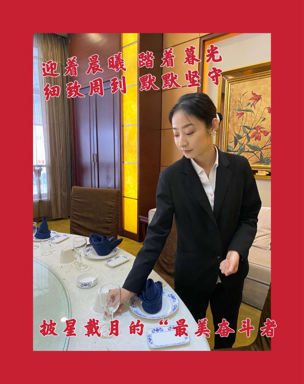 值臺(tái)服務(wù)、衛(wèi)生整理,迎著晨曦,踏著暮光,沒(méi)有轟轟烈烈的故事,只有默默的堅(jiān)守,她們?cè)诔抗忪湮⒌那宄孔邅?lái),在夜深人靜時(shí)忙碌,她們,是披星戴月的“最美奮斗者”,她們細(xì)致周到的服務(wù)讓賓客滿(mǎn)意加驚喜!