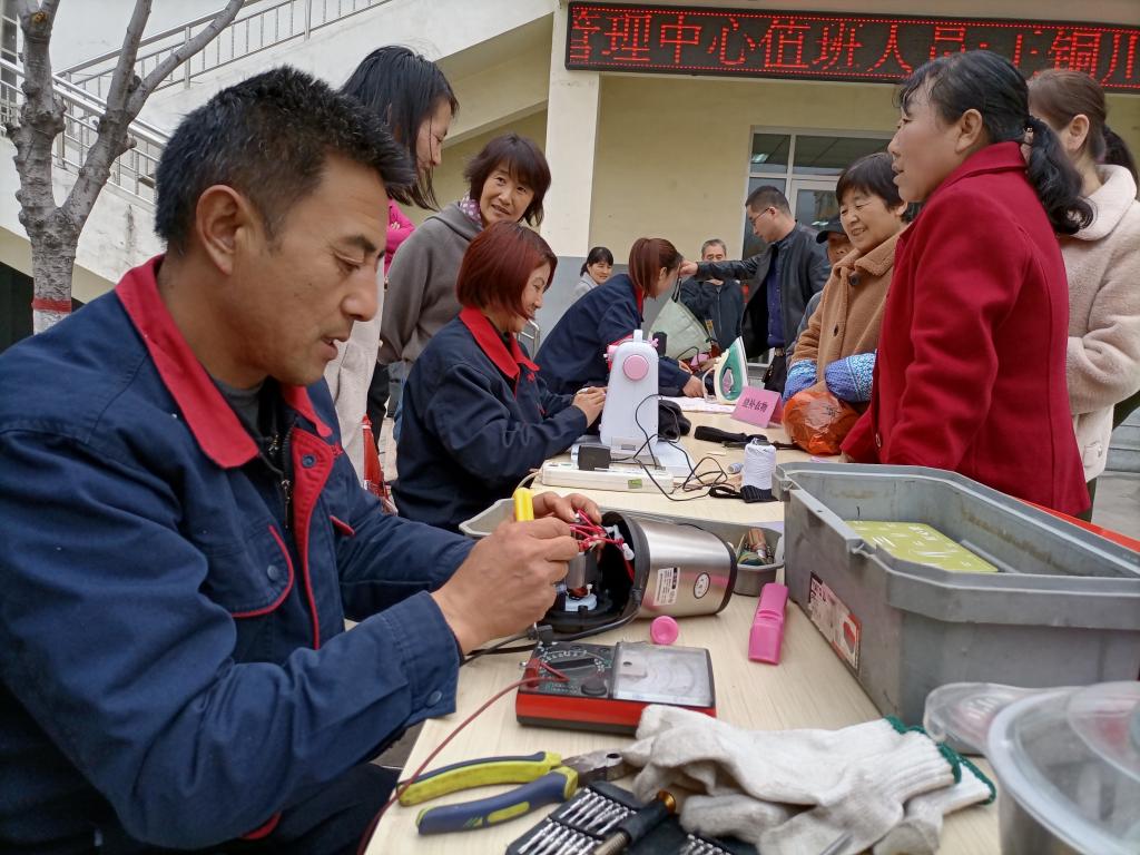 “你好,你看看我這個(gè)水壺,用了好幾年了,不知道咋不通電。扔了怪可惜的,看能修好不能?”家電修補(bǔ)點(diǎn)前人頭攢動(dòng)。