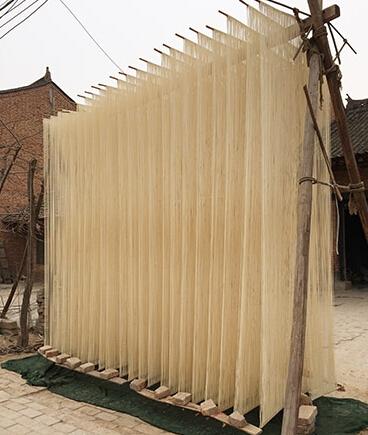 掛面的制作要在冬天進行,這是很有講究的。每年冬天,只要會制作掛面的農人都會吊掛 面。之所以選擇的冬,是因為冬天農人們相對要閑一點,收獲的糧食剛好在這個時候能加工變賣一點錢,用來貼補家用。還有就是冬天天氣干燥,太陽也沒有其他季節(jié)那么毒辣,這對掛面的晾干成型是非常有利的。