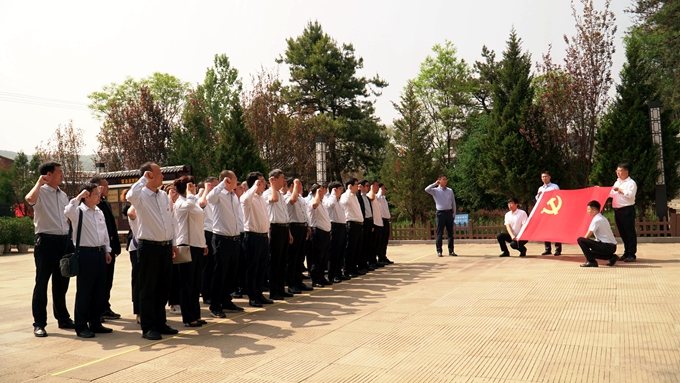 “我志愿加入中國(guó)共產(chǎn)黨,擁護(hù)黨的綱領(lǐng),遵守黨的章程,履行黨員義務(wù)……”在直羅戰(zhàn)役烈士紀(jì)念碑下,艷陽(yáng)天里,黨員干部們莊嚴(yán)嘹亮入黨宣誓的聲響徹這片曾拋頭顱、灑熱血的革命烈士圣地,回蕩在革命先烈們“初心”的緣起之地。