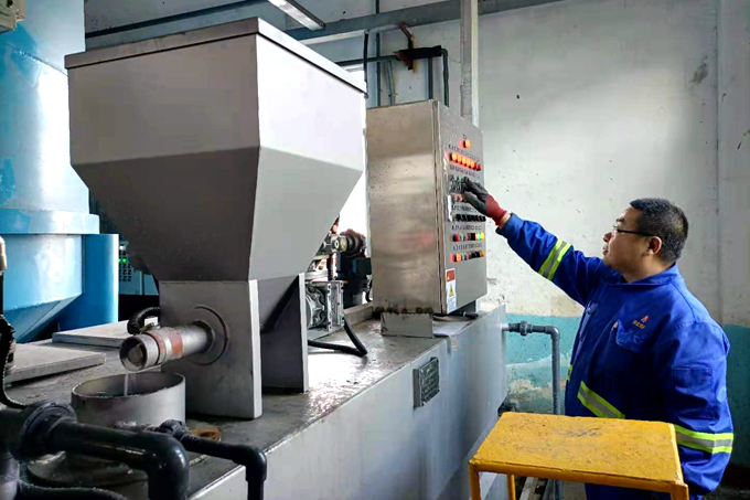 “壓泥是污水處理的重要環(huán)節(jié),原來的壓泥設(shè)備小,工作時專門需要一名工人操作,壓出的泥要人工用手推車進行處理?!痹摰V污水處理站工作人員慕彥中說。