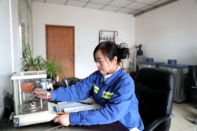“這是我們剛采集的煤樣,每隔1個(gè)小時(shí),我們就要按照國(guó)標(biāo)要求測(cè)定煤樣水分、灰分、揮發(fā)分、固定碳、硫份和發(fā)熱量。5月份以來(lái),配焦煤發(fā)熱量始保持在5700大卡以上,洗精煤灰分控制在8.05左右?!泵嘿|(zhì)化驗(yàn)室女工張潔說(shuō)。