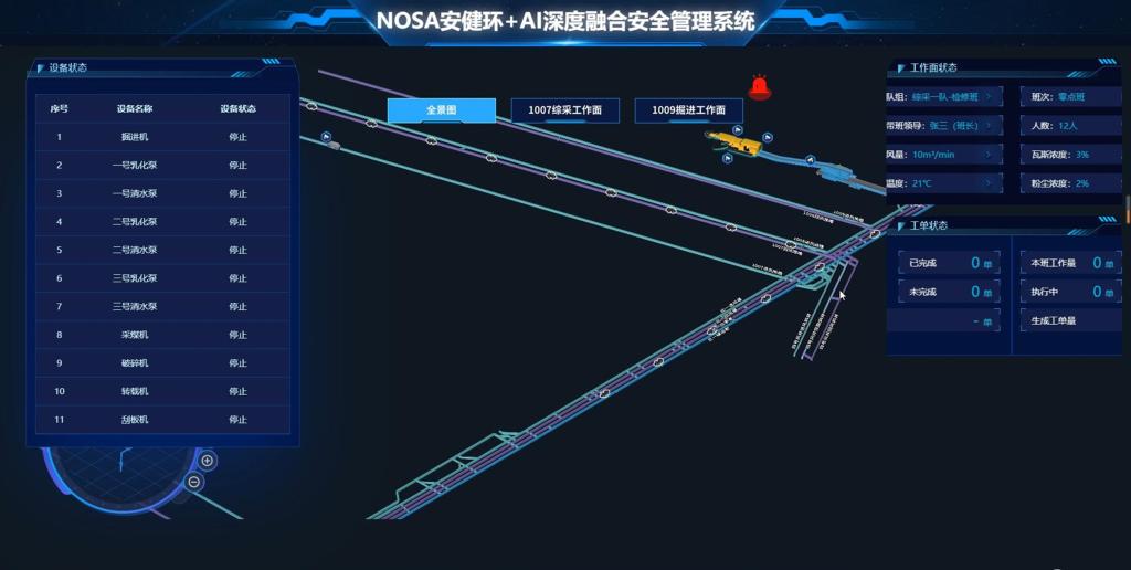 今年來(lái),一號(hào)煤礦全力加快應(yīng)用“AI+NOSA安健環(huán)”深度融合安全管理系統(tǒng)的進(jìn)度,目前已在1008綜采工作面、1009輔助運(yùn)輸順槽掘進(jìn)工作面、1010輔運(yùn)掘進(jìn)工作面、807綜采工作面、北一一部膠帶運(yùn)輸機(jī)頭、北一二部膠帶運(yùn)輸機(jī)頭、北一輔運(yùn)巷完成46個(gè)場(chǎng)景布置,安裝15臺(tái)熱成像攝像機(jī)、19臺(tái)小型紅外攝像機(jī)、57臺(tái)槍式攝像機(jī)、12臺(tái)聲光報(bào)警裝置、45臺(tái)廣播、27臺(tái)交換機(jī)。北一區(qū)域已實(shí)現(xiàn)對(duì)45種違規(guī)情形的識(shí)別和報(bào)警(不含各點(diǎn)位重復(fù)情形),并且已在807工作面進(jìn)風(fēng)端頭實(shí)現(xiàn)刮板運(yùn)輸機(jī)停機(jī)閉鎖、1009輔運(yùn)工作面已實(shí)現(xiàn)掘進(jìn)機(jī)停機(jī)閉鎖功能,兩個(gè)工作面70%的場(chǎng)景可實(shí)時(shí)常態(tài)化監(jiān)護(hù)使用,其余工作面正在加快違規(guī)模型的優(yōu)化學(xué)習(xí)和標(biāo)注訓(xùn)練。同時(shí)研發(fā)了“檢修采煤機(jī)”“檢修饋電開(kāi)關(guān)”“拉移設(shè)備列車”等8種標(biāo)準(zhǔn)作業(yè)智能管控程序,目前已經(jīng)入優(yōu)化和測(cè)試階段。