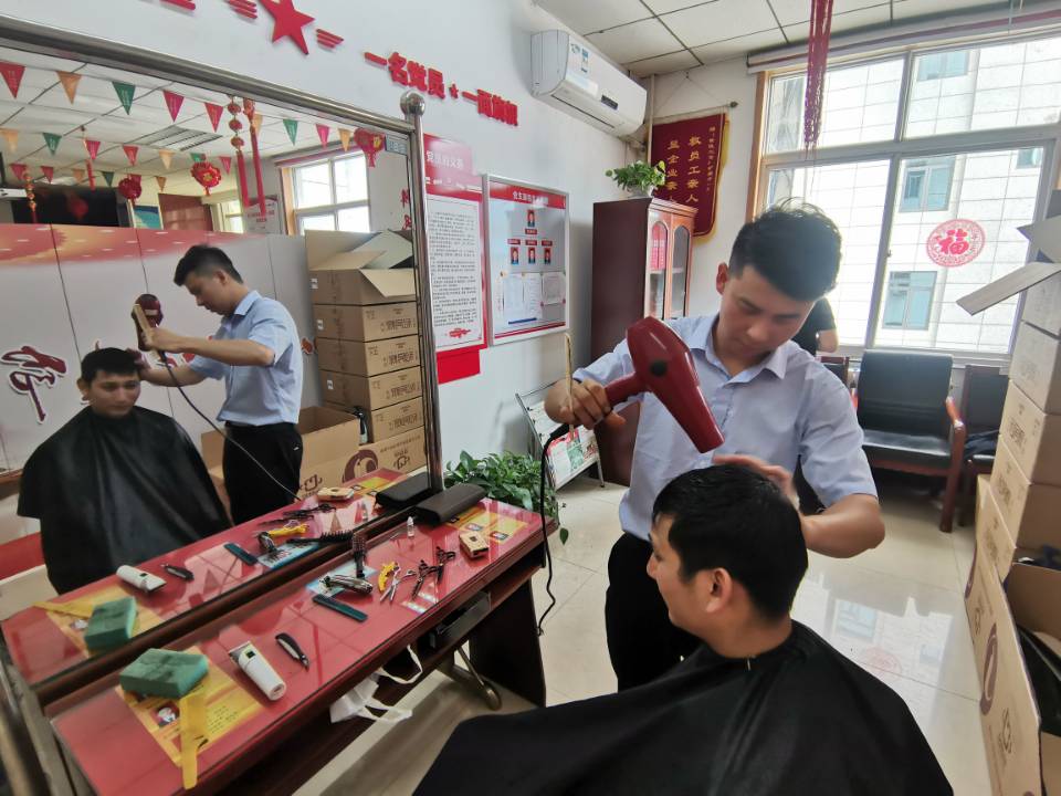 “把理發(fā)店搬到學(xué)習(xí)室,這還是頭一回,剪完頭后整個(gè)人都精神了許多,干活都有勁了,真沒想到小垚還有這樣的手藝?!眲偧敉觐^發(fā)的職工全海軍不禁對區(qū)隊(duì)的暖心做法連連稱贊。