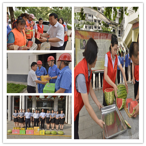 “大家辛苦了,今天給大家?guī)Я私禍仄?,夏季炎熱,要做好勞?dòng)保護(hù)和防暑降溫工作,合理安排作息時(shí)間,應(yīng)對(duì)高溫天氣,保證身體健康?!八颓鍥觥爆F(xiàn)場,志愿者們將一塊塊香甜的西瓜、涼茶送到職工手中,感謝他們?yōu)楣景l(fā)展所做的貢獻(xiàn),也希望在這最“熱情”的季節(jié)為他們送上了最“清涼”的關(guān)懷。