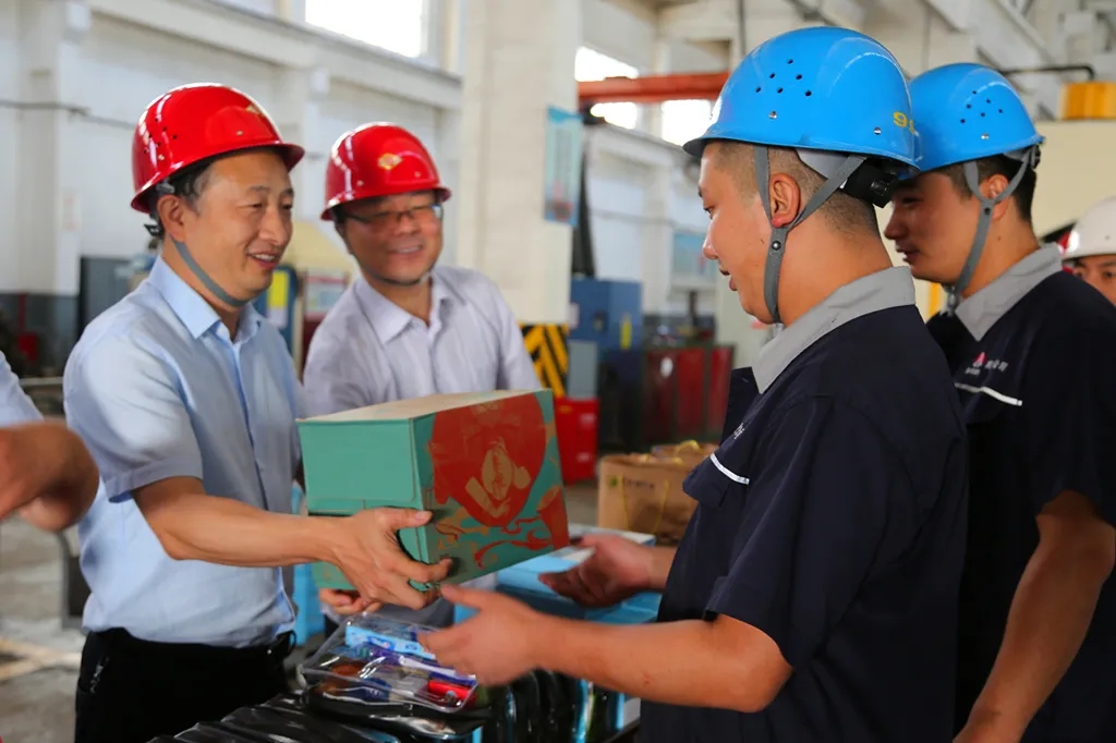 “這西瓜真甜啊,還有這酸梅湯喝到嘴里是清涼,流進(jìn)心里是溫暖,謝謝領(lǐng)導(dǎo)。”在機(jī)電總廠綜合車間,托輥生產(chǎn)線緊鑼密鼓的運(yùn)轉(zhuǎn)中,轟鳴的車床、閃爍的焊花與汗流浹背的職工共同勾畫出一幅熱火朝天的工作場景。孫鵬向該廠奮戰(zhàn)在生產(chǎn)一線的職工表示親切地慰問,他表示,今年以來,機(jī)電公司各項(xiàng)工作都卓有成效,這離不開大家的辛苦付出,希望大家在做好安全生產(chǎn)的同時(shí),也要做好防暑降溫工作,以飽滿的精神狀態(tài)投入到工作當(dāng)中去。職工們也紛紛表示,一定會(huì)立足本職崗位,保證做好安全生產(chǎn)工作,為公司高質(zhì)量發(fā)展多做貢獻(xiàn)。