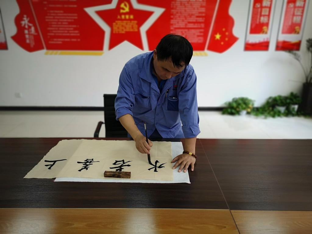 “煤場管理工作接觸外部人員較多,所以一定要身子正,這樣才不會影子斜!”這是吳衛(wèi)東從事煤場管理工作以來最大的感觸。憑借著這一堅定的信念,吳衛(wèi)東在工作中始終講求原則,不徇私情。也正是由于工作性質(zhì)的特殊,吳衛(wèi)東在工作閑暇之余愛上了書法,常以“字”明志,“博學(xué)善思”“上善若水”都是他最喜歡寫的字。2020年,他的書法作品《靜以修身 德以養(yǎng)志》獲得公司廉政文化作品一等獎。