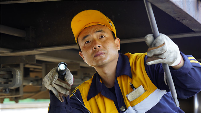 4.調(diào)車員李晨磊正在調(diào)車作業(yè)