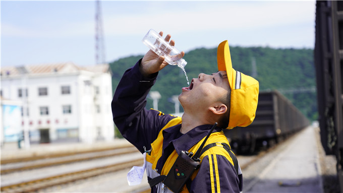盛夏的八月,空氣中仿佛夾雜著一股流動的火焰,讓人避之不及。黃陵礦業(yè)鐵運公司鐵道線蜿蜒向前,沿著鋼軌遠(yuǎn)遠(yuǎn)望去,鐵道線上熱浪蒸騰,道旁的石砟被烈日炙烤得滾燙,整個鐵道線像是一個露天的“汗蒸房”。在高溫的“烤”驗下,鐵路一線職工仍堅守崗位,戰(zhàn)高溫,確保煤炭鐵路安全運輸。
