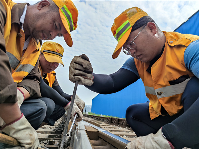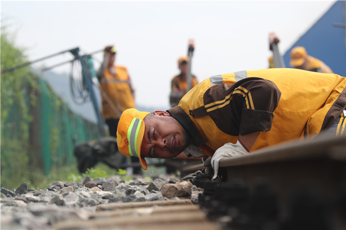 1.線路工馬占明在搗固作業(yè)中勘察線路