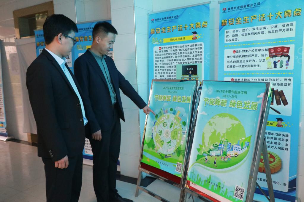 8月23日,瑞能煤業(yè)在做好疫情防控工作的前提下,精心組織開展節(jié)能宣傳周和全國低碳日宣傳活動。圖為職工在綜合樓觀看“節(jié)能降碳 綠色發(fā)展”宣傳海報。