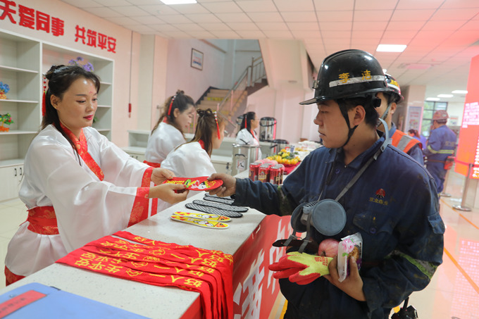 一大早,家屬協(xié)管員們與往常一樣在井口愛心驛站給礦工兄弟打著豆?jié){、熬著綠豆湯、沖好了咖啡。更為他特別的是她們還要給礦工兄弟們表演舞蹈,提前給每一位礦工送上誠(chéng)摯的節(jié)日問候,同時(shí)也將安全以溫情的形勢(shì)傳達(dá)給每一位職工。