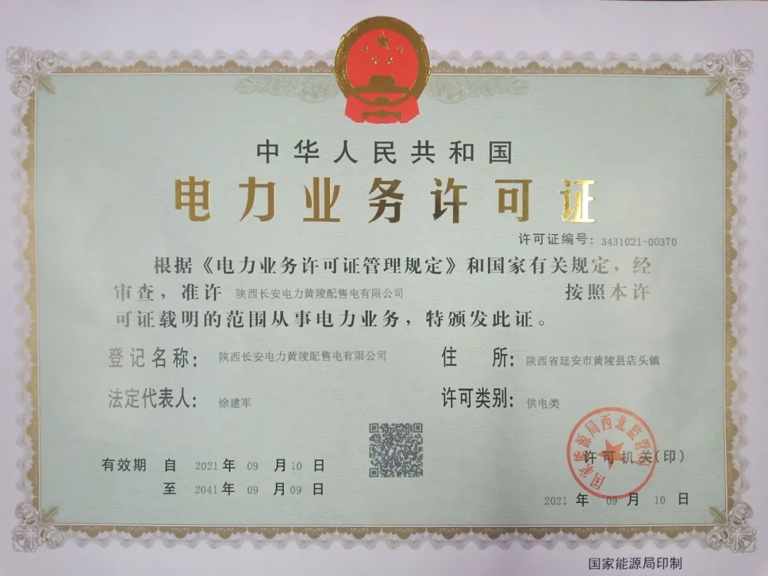 陜西長安電力黃陵配售電有限公司是黃陵礦業(yè)公司下屬的全資子公司,負(fù)責(zé)黃陵礦區(qū)內(nèi)所有配電網(wǎng)的運(yùn)營管理,具備獨(dú)立法人資格和獨(dú)立的財務(wù)核算。2019年6月28日經(jīng)國家發(fā)展改革委員會及國家能源局批復(fù),列為第四批增量配售電業(yè)務(wù)試點(diǎn)項(xiàng)目之一。2021年9月,陜西長安電力黃陵配售電有限公司取得國家能源局西北監(jiān)管局頒發(fā)的電力業(yè)務(wù)許可證(供電類),是延安市首家取得電力業(yè)務(wù)許可證(供電類)的配售電公司。