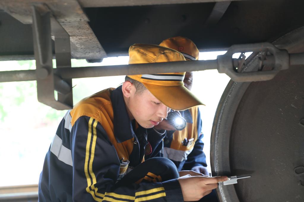 “當一名合格的檢車員需要具備充足的體力和精湛技術的雙重考驗?!泵鎸γ苛辛熊嚕罴押涝捳Z里帶著一份自豪:越是節(jié)假日,越要繃緊安全弦,敲響安全鐘,以百分百的精力確保安全運輸。