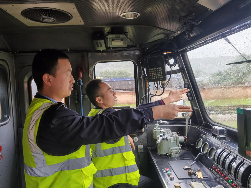機車司機田王明與副司機劉盼密切注意著信號開放狀態(tài)與道岔開放位置,84024次列車在兩人的呼喚應答中緩緩啟動。黃陵礦區(qū)煤炭專用線地處山區(qū),線路彎道多、坡道大、曲線多,所以列車在運行中對司機、副司機的駕駛要求非常嚴格,只見他們相互“手指口述”,相互提醒,對每一個彎道、橋梁、隧道、信號都嚴格執(zhí)行確認制度。對機車每一個按鍵的操控和制動機的使用都一絲不茍。列車在待避期間筆者了解到,他們往返一趟列車呼喚應答次數高達400多次,填寫運行記錄50余次。