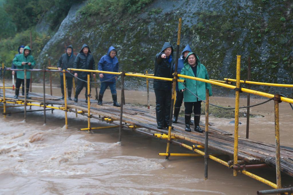 從上畛子到各泵站,沿途水毀多處道路被洪水沖毀或阻斷,無法通行,從越野車、工具車、三輪摩托車到涉水步行,嚴(yán)重的災(zāi)情給供水搶險(xiǎn)搶修工作帶來了極大的難度。雷貴生一邊對沿途的抗災(zāi)搶險(xiǎn)情況進(jìn)行實(shí)地查看了解,一邊關(guān)切的與沿途遇到的搶險(xiǎn)干部職工交談,叮囑他們注意安全,注意保暖。