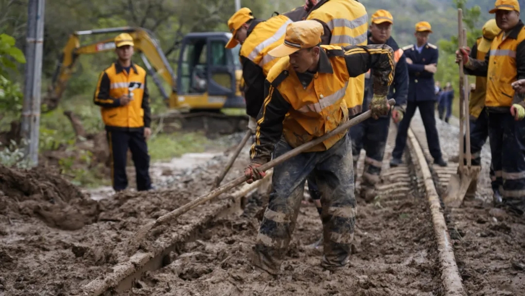 “鐵路專線K21+700城梁隧道口發(fā)生山體滑坡,滑落泥石流約600立方左右,倒塌的樹木和淤泥已經(jīng)蓋過鋼軌,煤炭外運通道被徹底堵死?!?/p>