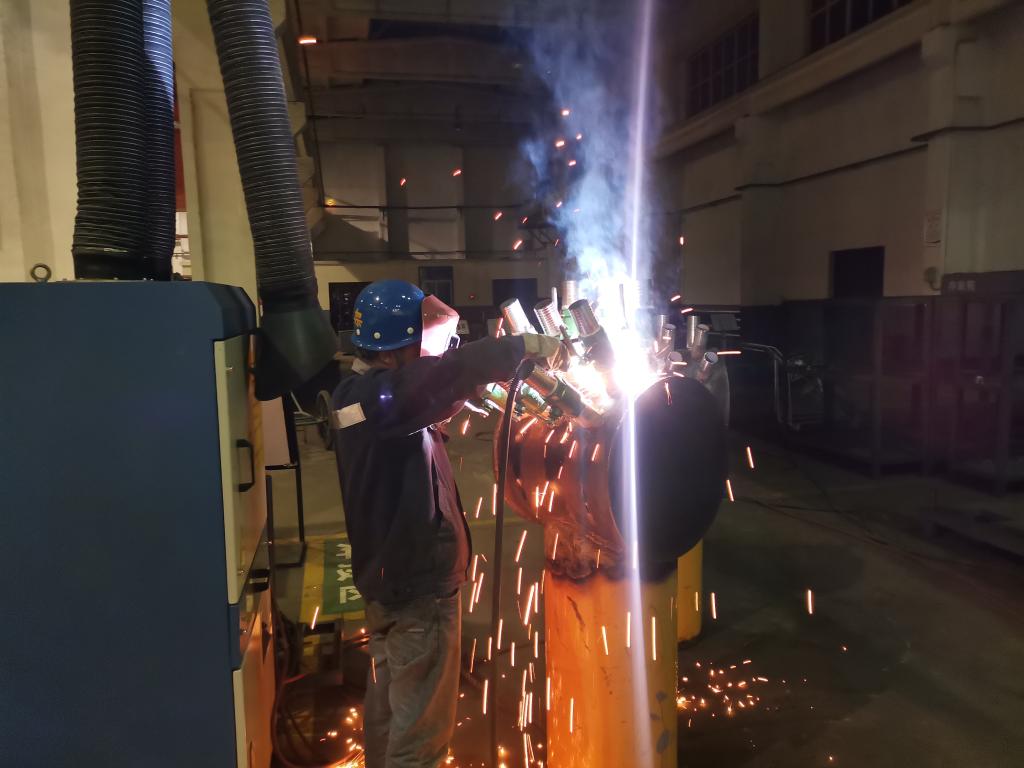 10月9日凌晨12時(shí)30分,所有配件加工準(zhǔn)備完成,為保證按時(shí)完成加工任務(wù),由三名經(jīng)驗(yàn)豐富的電焊工輪流進(jìn)行焊接,并安排一人作為機(jī)動(dòng)人員負(fù)責(zé)后勤供應(yīng),保證氧氣乙炔、焊條等物資使用不中斷。
